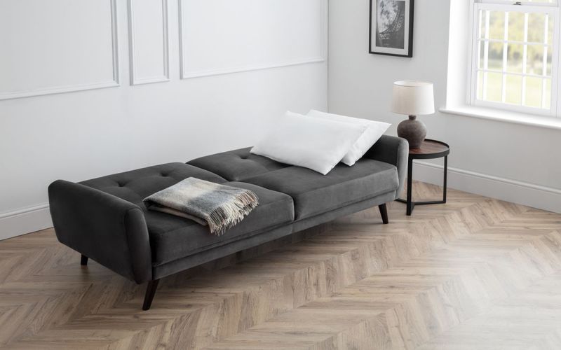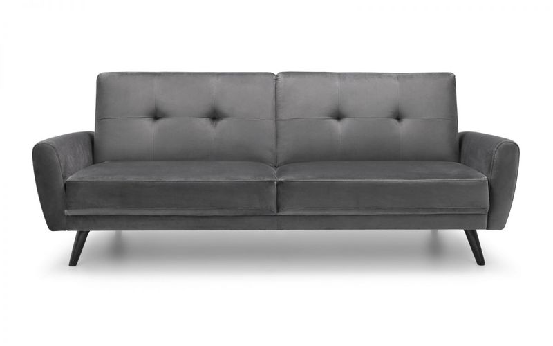 The Monza Sofabed is a stylish , highly functional piece with retro Scandinavian design influences. It is impeccably tailored in a smart, dark grey velvet fabric. Monza has a seat that is deeper than most similarly sized sofas, and is consequently incredibly comfortable. The Sofabed's split back folds down easily to form a large, comfortable sleeping surface for two adults. Its clean lines and slick design make it a real focal point for any modern living space. Part of the wider Monza upholstery range from Julian Bowen.