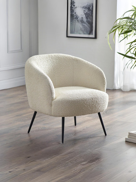 The Gigi boucle accent chair will seamlessly complement your living space - with a beautiful curve design, this chair is guaranteed to brighten up your space leaving a classic and inviting contemporary look. Finished in a elegant ivory boucle fabric, the Gigi is perfect for lounging around, working, or relaxing with friends.