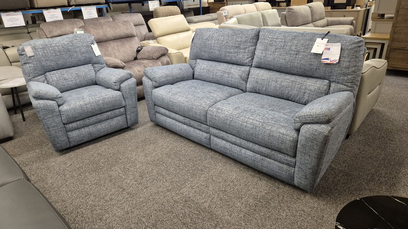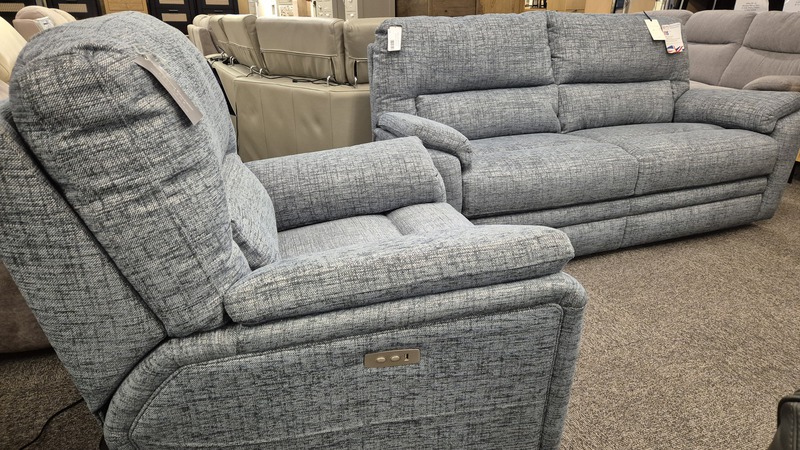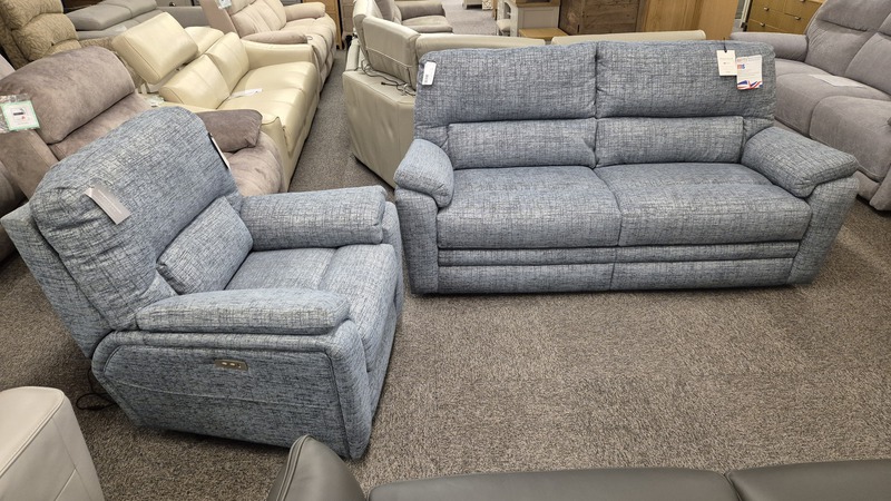 Parker Knoll Hampton Large 2 Seater Sofa & Power Recliner Armchair – Blue Fabric Gade A